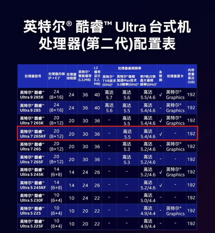 并且作为intel的最新处理器,Intel 酷睿 Ultra 7 265KF在性能方面也可圈可点,搭载了8个性能核(P-core)+12个能效核(E-core),总共20核20线程,基础频率3.9GHz,最大睿频更是能飙到5.5GHz,还配备了33MB的三级缓存。