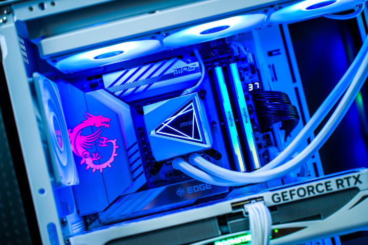 而主板方面,则可以根据预算来选择。比如预算充足,且想搭载纯白全家桶主机,我的推荐是微星MPG Z890 EDGE TI WIFI刀锋钛主板,该主板不但整体设计优秀,用料表现也是非常豪华。比如白色的PCB为搭载了2Oz铜箔的8层服务器级PCB(型号为NPG-170D),同时供电方面也是采用16+1+1+1豪华供电设计,再配合覆盖整个VRM的散热铠甲,能保证处理器在高负载环境下保证性能的稳定释放。